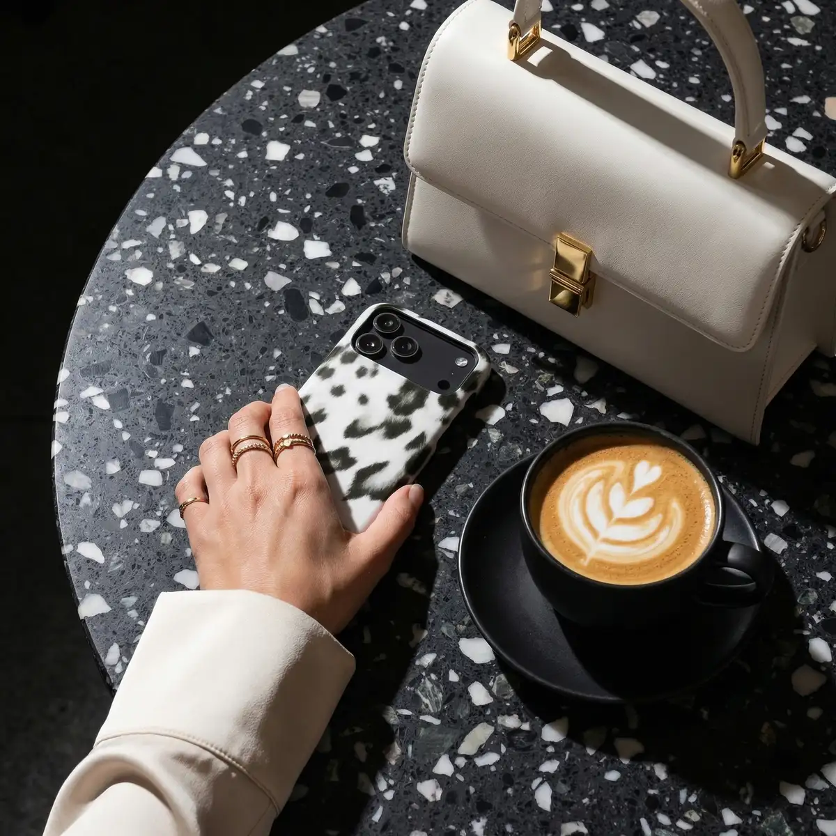 Cool, crisp, and undeniably chic. The Arctic Leopard phone case features a striking monochromatic spotted pattern on a clean white backdrop. It is the perfect choice for the minimalist who wants an edgy, high-contrast look that feels both modern and sophisticated.