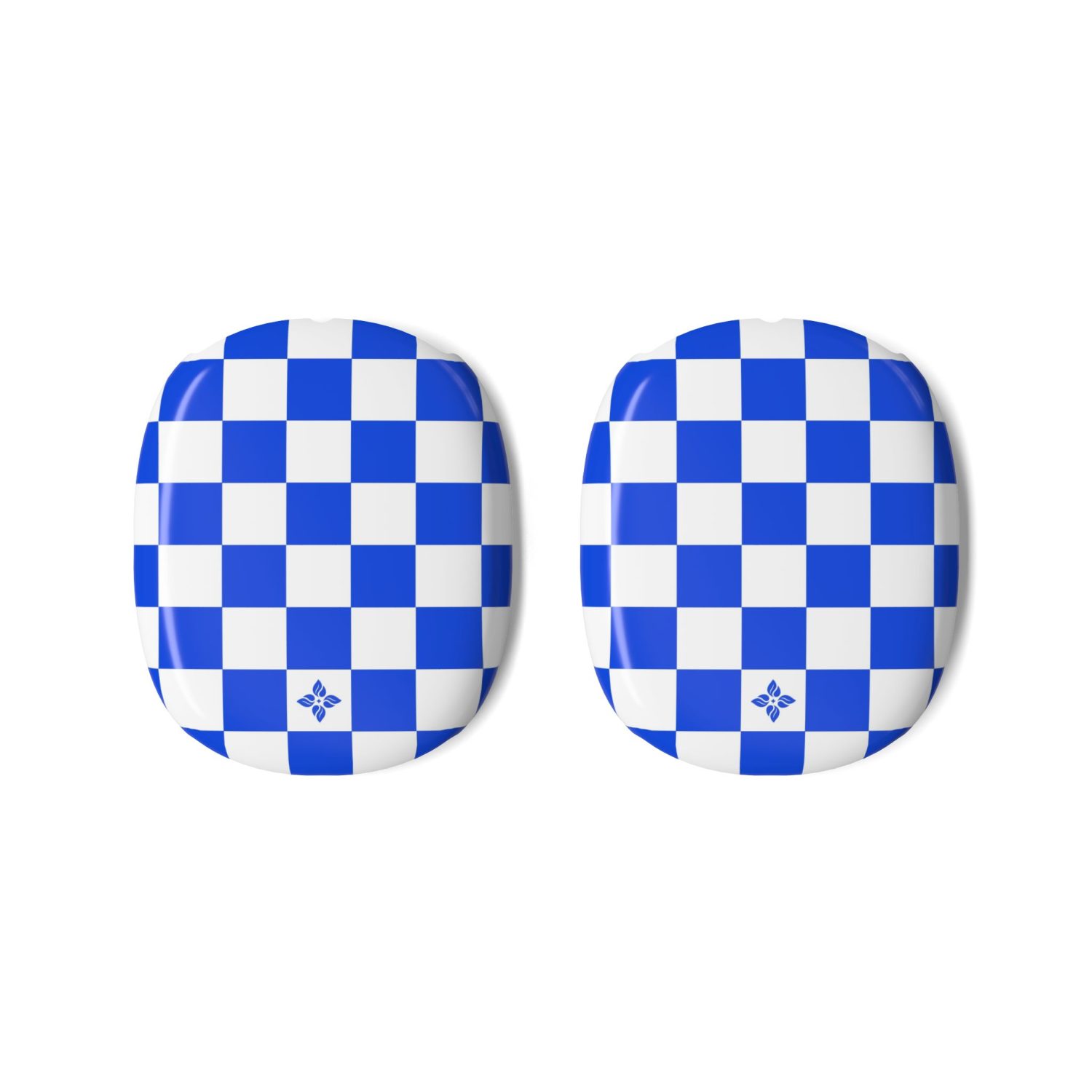 This design features: Graphic check print, blue-and-white tones, slim protective design.